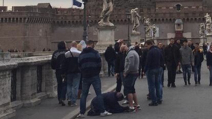 Un grupo de hinchas checos que este jueves deambulaba por Roma poco antes del partido entre la Lazio y el Sparta de Praga ha protagonizado un episodio de humillación similar al registrado el martes en Madrid entre aficionados del PSV y un grupo de mendigos.