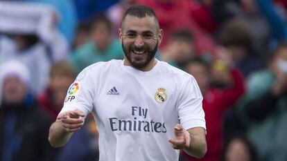 Karim Benzema parece decidido a evadirse de todos los problemas que le llegan desde fuera de Madrid haciendo lo que mejor sabe hacer, jugar al fútbol. En el verde, el francés se transforma, se olvida, disfruta y hace disfrutar. Lo hizo ayer en Getafe, donde se desquitó y comandó al Madrid con un recital de juego, un gol y dos asistencias. Y donde también volvió a sonreír solo unas horas después de conocer la decisión de la federación francesa de dejarle fuera de la selección para la Eurocopa por su implicación en el chantaje sexual a Valbuena.