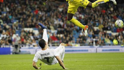 Pese a las cerraduras del conjunto castellonense, el gol llegó como consecuencia del juego, de lo que solo se encargaron los muchachos de Zidane. Cristiano, que había adivinado el destemple de Mario en la banda derecha, se descolgó por la zona. En su segunda incursión, su centro lo desvió Asenjo hacia el pasillo central del área, donde anidaba Benzema, que solo tuvo que poner la cabeza. Poco después, el Villarreal tuvo su media oportunidad de la noche, un remate de Denis Suárez a un paso del intermedio bien interceptado por Keylor, que siempre está, aunque el encuentro solo le requiera una vez.