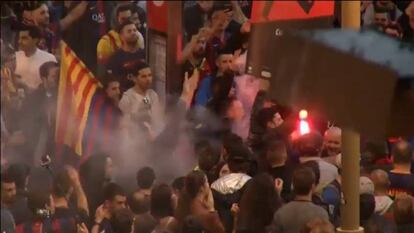 Un centenar de personas apostado frente al hotel Abades de Granada perseguía una foto, un autógrafo o simplemente dar el último aliento de la Liga a los jugadores del Barcelona, que permanecieron ajenos al ruido —incluso cuando bajaron a comer, a las 13.00 horas, lo hicieron por unos portones que prohibía el contacto con los aficionados instalados en el hotel—, por más que se palpaba la tensión por cualquier rincón. “Hoy hay que ganar, ¿no?”, se convencía un directivo. “Vamos a ver, vamos a ver”, le respondía otro momentos después. “No molestéis al mister ¿eh?, que hoy no está para eso”, soltaba un tercero con ironía. “A ver, a ver”, repetía como una coletilla el anterior directivo. Era día de fiesta o entierro, y todo se decidiría en 90 minutos. Una vez pasados, ganó el confeti.