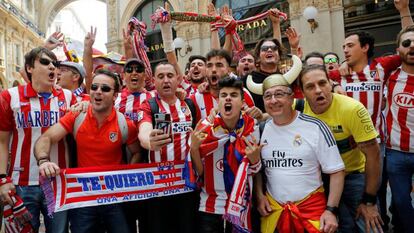 "Ole, ole, ole, Cholo Simeone", se escucha de repente en el eco de un callejón del barrio de Brera. "Cómo no te voy a querer", replican los madridistas en una dialéctica pacífica a la que asisten contrariados los hinchas de otros clubes que ya habían reservado entrada, hotel y avión. Hooligans extemporáneos del Manchester. Urbanitas del Saint-Germain. Blaugranas en busca de autor. Y milanistas nostálgicos que leen con sobresalto la noticia de que Berlusconi ha decidido vender en equipo a China.