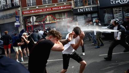 Los disturbios podrían, incluso, derivar en un conflicto diplomático. El Gobierno de Rusia convocó este miércoles al embajador de Francia para quejarse de lo que cree “medidas discriminatorias” adoptadas contra ciudadanos rusos, si bien el ministro de Exteriores, Sergei Lavrov, lamentó el comportamiento de “algunos aficionados”. Moscú se molestó, en concreto, por la detención de 43 personas que se dirigían a Lille en autobús para presenciar el partido de su selección. Los arrestos, en vigor durante 48 horas, tuvieron lugar después de los altercados del fin de semana en Marsella. Son esos 43 ciudadanos rusos los que el gobierno francés quiere expulsar del país. También quiere el Gobierno francés expulsar a otros cuatro seguidores rusos que se vieron involucrados en una breve trifulca con aficionados ingleses la noche del martes, según anunció la prefectura de la región de los Altos de Francia.
