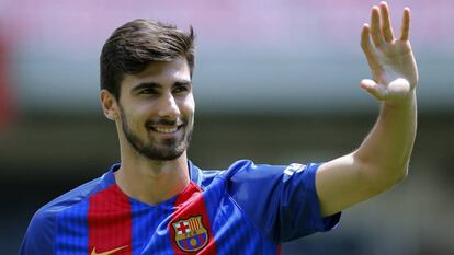 Una amplia comitiva de familiares y amigos del portugués André Gomes inundó la sala de prensa del Camp Nou, entusiasmados con la presentación del nuevo futbolista del Barcelona. También llegó su agente Jorge Mendes, que parecía una estrella de rock porque a cada paso que daba le solicitaban selfies y fotos. Pero la verdadera estrella el jugador, que atendió a los medios de comunicación arropado por el director deportivo, Robert Fernández, el responsable de las secciones profesionales, Albert Soler, y el vicepresidente deportivo, Jordi Mestre, y con las imágenes de fondo de sus mejores actuaciones con el Valencia. “Es un honor vestir esta camiseta, estoy orgulloso, y se cumple un sueño mío y de mi familia", entonó como hace cualquiera que llega a un gran club. Aunque lo argumentó: “Tenía que elegir y creo que estar aquí es lo mejor. Seguramente no me equivoque”. La elección se dividía entre dos equipos, toda vez que antes descartó a la Juventus: el Barça y el Madrid.