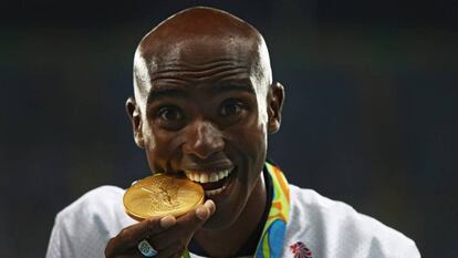 El corredor de fondo con más medallas mundiales, europeas y olímpicas corría los 10.000 metros a la caza de su tercer oro olímpico para ponerlo en su vitrina junto a los dos de Londres y con un hueco para el de los 5.000m, que le espera dentro de una semana. Llegaba por la curva del 4.700. Estaba bien colocado junto a su compañero y amigo Galen Rupp. Como había previsto, guiaba la carrera África, es decir, Etiopía y Kenia, los dos países a los que se empeña en quitarles la gloria de su tradición. Se turnaban en cabeza como miembros de un equipo ciclista marcando un ritmo alto y sostenido los kenianos Kamworor, Muchiri y Tanui, veteranos de la derrota de Londres, y los etíopes Hadis, Demelash y Tola, tres jovencitos que ya han bajado de 27m vírgenes de memorias tristes, unos niños cuando Londres. Iban rápido, a 2m 40s el kilómetro, cercanos a pasar el 5.000 por debajo de 14m, cuando Farah tropezó con Rupp y se fue al suelo. Como buen gregario, el rubio norteamericano con cara de niño, su compañero de entrenamientos en los bosques de Oregón, donde el pino, a las órdenes de Alberto Salazar y Nike, le esperó.