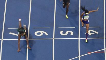 Allyson Félix y Shaunae Miller dieron cuerpo y movimiento al pleonasmo aquel de lucha agónica. La norteamericana, campeona mundial, llegó a la última recta dos metros por detrás de la atleta de Bahamas, que poco a poco se iba paralizando. Fue una lucha tremenda.