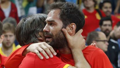 A su vera ayer estaba Jorge Garbajosa, en calidad de presidente federativo, pero también de amigo. Nadie mejor para acompañarle, no en vano coincidieron en Vitoria en edades tempranas y en Toronto Raptors, donde ambos hicieron las Américas. “Tu comportamiento ha sido modélico y tu figura imborrable”, le regaló Garbajosa para despedir al que el piloto de la mejor selección.