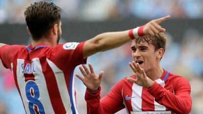El Atlético transitó por el mismo camino que recorrió en su última visita liguera a Vigo. Recorrió la ruta que va del padecimiento al disfrute y mostró que noventa minutos en el fútbol son una vida. Goleó en un partido que no tuvo respiro para derivar en un exigente ir y venir siempre con el aliento de un rival cerca del poseedor de la pelota, un ameno entretenimiento para el espectador, un martirio físico para el jugador. Hacia ahí ha ido el fútbol, que ahora tiene su tuétano en la presión y el posicionamiento tras recuperar el balón más que en su propio manejo. Del Atlético no cabía esperar nada diferente y más con un once pleno de colmillo que agrupaba de inicio a Griezmann, Carrasco y Torres. El Celta suele buscar más la finura en campo en contrario, pero sin Orellana y con Rossi a la espera en el banquillo, apareció más concreto que de costumbre. En la primera parte fue casi aquel Celta de Luis Enrique que dañaba en veloces transiciones, en la segunda no fue nada.