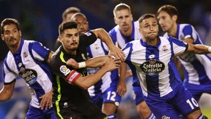El Deportivo jugó y ganó con la furia de los necesitados. Le faltó sosiego, pero le sobró pasión y con eso le bastó para pasar por encima de un decepcionante Sporting que estuvo a punto de llevarse un punto que no mereció. Una victoria en seis jornadas, cuatro de ellas sin ver puerta, ya en la retaguardia de la tabla, el Deportivo se exigió no fallar. No hay finales en la séptima jornada de liga, pero sí controles de paso y el equipo de Garitano necesitaba el sosiego del triunfo y más antes de afrontar quince días sin fútbol con la perspectiva de regresar en el Camp Nou ante el Barcelona. Era el momento de exponer, de no guardarse nada y ahí el Sporting pareció andar más desahogado porque su puesta en acción fue más remisa. Le pasó por encima el Deportivo no tanto por actitud como por intensidad. También por fútbol, lo cual es no una buena noticia para el equipo de Abelardo. Los coruñeses no andan sobrados, pero explotaron sus fortalezas, la primera de ellas la movilidad y las dotes para combinar de Emre Çolak, un futbolista técnico de los que entra más por el ojo de los aficionados que de los entrenadores, quizás sin mucho recorrido, pero con una magnífica capacidad para no perder la pelota y darle continuidad al juego. Con él se activaron los flancos, más el de Marlos Moreno, que fue a menos, que el de Bruno Gama, más difuminado ante el esfuerzo de Isma López. Le faltó, una vez más, al Deportivo encontrar a su delantero, a Andone, que va y viene, busca y no encuentra, pero le sobró para encerrar al Sporting y hacerle pasar un mal rato porque tampoco encontró salidas para aliviarse.