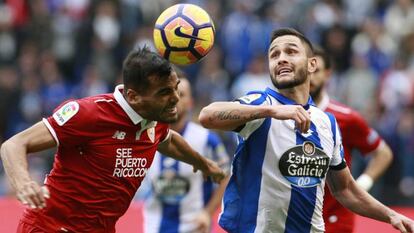 Encontró el espacio el Sevilla tras media hora. Lo halló Ganso, que tiene la ganzúa para cualquier intrincada cerradura. Puede que no tenga la velocidad precisa para marcar diferencias al máximo nivel en Europa, puede que haya que verlo, también, pero el brasileño es un orfebre. Un taconazo suyo abrió un espacio para dejar a Ganso solo ante Tyton. Reaccionó el meta con una parada de balonmano y tapó el gol. Decayó entonces unos minutos el Sevilla, pudo airearse el Deportivo, que no acabó de encontrar a Emre Çolak, pero sí a sus dos delanteros. Trabajó bien Babel y anotó Florin Andone, que hizo por fin el gol que tanto buscaba este año. Ya se había estrenado la jornada pasada en Granada, pero en esta ocasión cuadró el círculo que ha estado obligado a trazar tantas veces desde que empezó el campeonato, el de buscar el gol de la nada. Lo encontró desde el pico del área, tras deshacerse de un zaguero, picar la pelota entre otros dos y cruzar ante la salida de Sergio Rico.