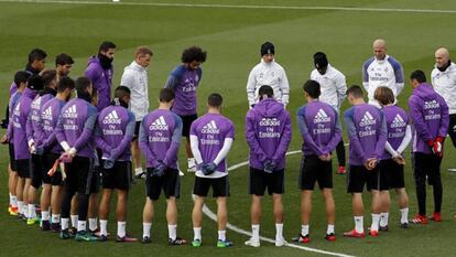 Los jugadores y técnicos del Real Madrid guardan un minuto de silencio, este martes.Vídeo: ATLAS / Edición: EL PAÍS