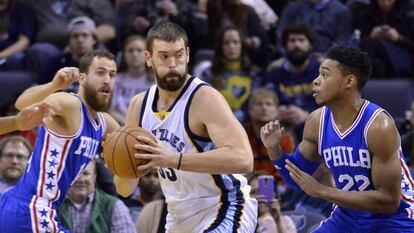 Tony Allen dos tiros libres y pareció dejar el partido visto para sentencia. Pero Randolph, que reapareció después de haberse perdido siete partidos por el fallecimiento de su madre, falló dos tiros libres, y los Sixers dispusieron de dos triples, fallados por Saric y Stauskas, para forzar la prórroga. Además de Marc Gasol, destacaron JaMychal Green, con 13 puntos y 10 rebotes, y Randolph, con 12 puntos y 14 rebotes. El turco Ilyasova, con 23 puntos y 17 rebotes, y el croata Saric, con 17 puntos, fueron los más brillantes en los Sixers. Sergio Rodríguez aportó 5 puntos, 3 rebotes y 3 asistencias.
