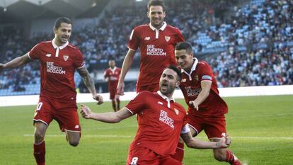El primer hat-trick de Vicente Iborra, que además apenas jugó los últimos 45 minutos del partido, le dio el triunfo al Sevilla en Balaídos y lo mantiene en la pelea por molestar a Real Madrid y Barcelona en la azotea de la clasificación liguera. Sentenció el capitán sevillista el duelo de pizarras bielsistas entre Sampaoli y Berizzo, un partido pleno de sutilezas y detalles que saltaron por los aires ante la exuberancia del todocampista valenciano. Iborra anotó de cabeza tras un córner, como llegador y de penalti, un muestrario del repertorio de uno de esos imprescindibles profesionales a los que los focos alumbran más en de puertas adentro que en el exterior. En Vigo disfrutó de una tarde para el recuerdo.