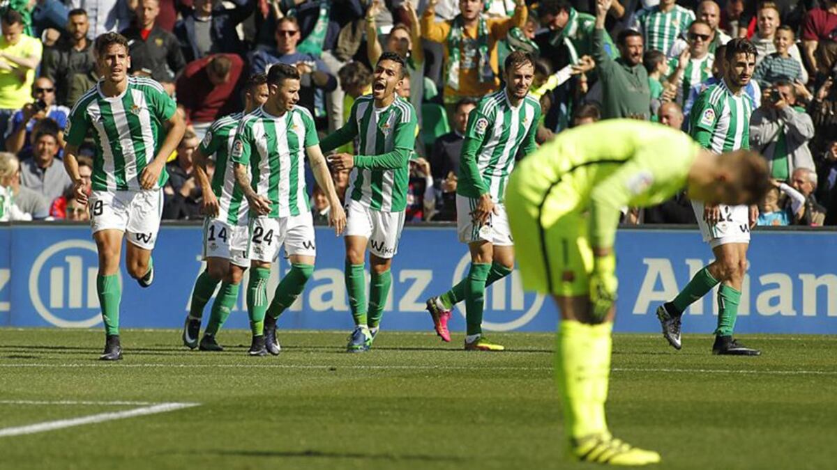 Hasta el gol de Alex Alegría no hubo más equipo que el Betis, replegado en una defensa de cinco, excelente en las transiciones, mejor también en la posesión, superior en corto y en largo, exigente con Ter Stegen. El portero intervino muy a menudo para bien y por el contrario apenas había noticias de Messi. El 10 se dejó caer a la zona de medios por la falta de munición y solo consiguió enganchar una vez con Neymar, reducido en el mano a mano por Adán. Impreciso, el Barça no contó ni una ocasión más hasta el descanso, arramblado por el Betis, liderado por Ceballos y con un excelente sentido de equipo por parte de Rubén Pardo. El Barcelona solo sobrevivió por la falta de puntería local y la bravura de Piqué.