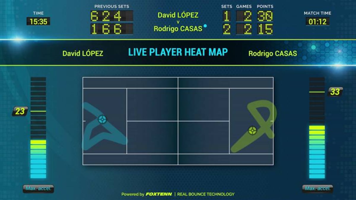 El sistema que presentó Javier Simón, su creador, durante la celebración del torneo de futures -nivel de promoción de la ITF- que Foxtenn patrocina en el Centro Internacional de Tenis de Cornellà, se basa en el análisis de 150.000 imágenes. “Eso nos permite ver el bote real en tiempo real”, comenta Simón. “Piense que el ojo humano solo puede detectar 30 imágenes por segundo”. Simón trabajó como máximo responsable comercial mundial de la marca Danone y lanzó al mercado el producto Actimel. Pero en los últimos cinco años ha estado preparando este proyecto que ahora acaba de ver la luz. “Mi padre era inventor. Y creo que heredé su instinto. Llevamos mucho tiempo tras este proyecto unas 15 personas en la empresa y otras 15 externas, que colaboran con nosotros”.