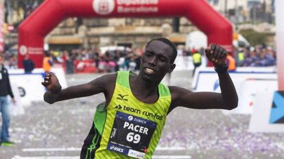 Insólito podio el del maratón de Barcelona. El vencedor de la prueba fue el mediofondista keniano Jonah Kipkemoi, un corredor de 27 años, ¡paralímpico en Londres 2012!, que en teoría participó como liebre, los corredores que la organización de la competición contrata para que impongan un buen ritmo a los atletas favoritos. Cruzó la meta con un tiempo de dos horas, ocho minutos y 57 segundos. Insólito, porque el de ayer fue su primer maratón. Pero la ausencia a última hora del principal favorito y la retirada del segundo por una lesión en el bíceps femoral en el kilómetro 30, hizo que se quedara solo en el tramo final… se sintió bien, tiró de piernas —el tramo final de subida por la avenida del Paral·lel se las trae— y cruzó solo la meta.