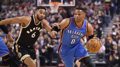 Westbrook y Marc Gasol se anotaron sendos triple dobles (dos dígitos en tres apartados estadísticos) en otra demostración de su capacidad para despuntar en todas las facetas del juego y abanderar a sus equipos. Westbrook condujo a Oklahoma City a un contundente triunfo en Toronto (102-123) y Marc Gasol hizo lo propio para Memphis en Atlanta (91-103).