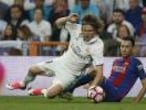 El primer acto derivó por vías opuestas, por la ruta más natural de cada uno. Más fervoroso y directo el Real Madrid; más moroso con la pelota el Barça a la espera de la mecha de Messi. Le costó a los azulgrana sacudirse a su adversario, de entrada empotrado cerca de Ter Stegen. El meta alemán es el primer encargado de articular el juego culé, pero solo encontraba evacuación por el pasillo central. Las bandas visitantes eran una ciénaga. Por un lado, con la ortopédica posición de Paco Alcácer, que nunca fue, ni será, un extremo. Por la derecha, todo el carril para Sergi Roberto, arrestado por Marcelo y algún volante blanco más. La desventaja de Alcácer frente a la pujanza de Carvajal se evidenció al minuto. Lo que tardó el lateral en sacar de rueda al valenciano y asistir a Cristiano, pateado por Umtiti dentro del área. No hubo condena arbitral, indulto barcelonista que quizá le condicionara más tarde con sus perdones a Marcelo y Casemiro.