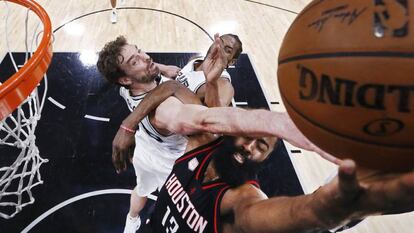 San Antonio pone el 3-2 tras un tapón del alero argentino a Harden (110-107) y Pau Gasol se lleva una bronca de Popovich
