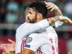 Con el duelo enfilado al cuarto de hora, España mantuvo los latidos. Nadie se hizo el remolón. Con la pelota enganchada casi a perpetuidad, el equipo se movió de maravilla entre los pocos claros aparentes en la selvática defensa rival. Pero estos chicos manejan de maravilla el fútbol y, llegado el caso, el futbito entre trincheras. Hasta el intermedio, España tampoco esquivó la faena sin la pelota, y estranguló cada salida local con una presión alta. Y en el mejor momento español llegó el segundo tanto, esta vez por el otro costado, donde Isco bailó sobre Ristevski, al que hizo un nudo con un regate con ambos pies. Un lujazo muy propio de este Isco cada día más creciente y maduro. Con su defensa en la cuneta, el malagueño asistió de maravilla a Diego Costa, al que le bastó con meter la uña a un palmo de la red.