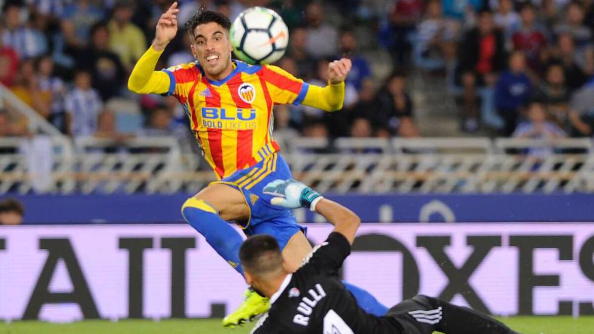 El Valencia, pletórico tras su goleada contra el Málaga, medía si la Real seguía en el cielo que alquiló desde el principio de la temporada o se había instalado en un limbo más cómodo que placentero tras dos derrotas consecutivas. O sea, si el cielo le sostenía o le empujaba la ley de la gravedad. Pero al Valencia, que lleva varias temporadas en un limbo de alquiler elevadísimo, también medía su placentera nueva urbanización y su nueva estatura de la mano de Marcelino. Se midieron tanto que casi se pierden las referencias. Tanto que los goles caían sin necesidad de mover demasiado el árbol, frutas tan maduras como inesperadas, vareadas por momentos de inspiración más que por el riego del fútbol. Haberlo lo había, a ráfagas, a golpes de talento, de fortuna o de infortunio.