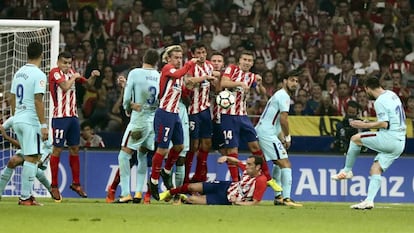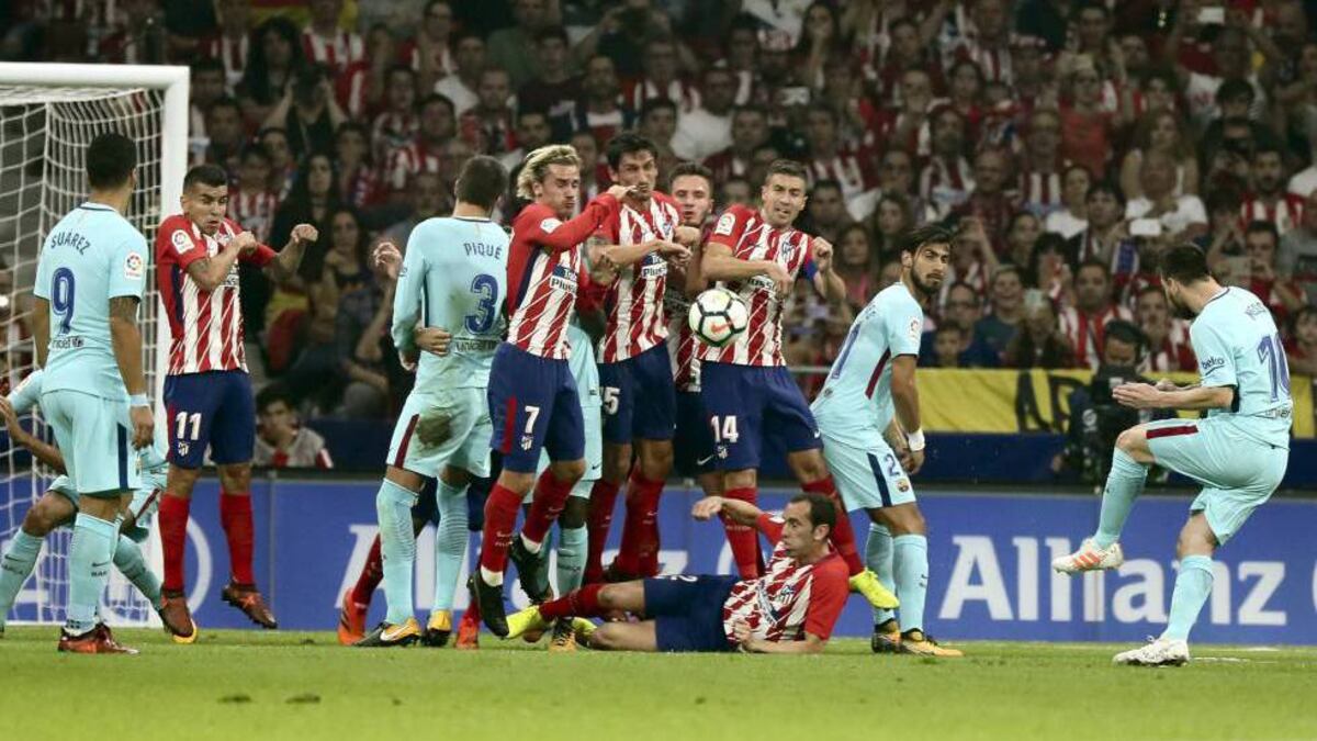 El Atlético interpretó desde un principio que su partido estaba en el mantenimiento de su excepcional orden defensivo. En esperar y tratar de morder como pudiera. Quitando arriba y disparándose a la contra. O tratando de coser juego cuando el Barça se lo permitiera, que fueron pocas veces. Bien plantado y coordinado en las basculaciones, con Koke y Carrasco tapando la creación de juego de Rakitic e Iniesta, los dos alfiles de Valverde, situados casi siempre en perpendicular de los picos del área de Oblak, el Atlético invitó al Barça descaradamente a que tratara de desnudarle con la pelota. De Messi se encargaban Gabi y Saúl cuando se metía por dentro, ayudados unas veces por Correa y otras por Griezmann. Un trabajo de zapa grupal eficaz.