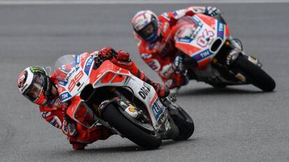 En Sepang ocurrió que, al instalarse en las motos este curso las pantallas electrónicas a través de las cuales los equipos pueden enviar mensajes a sus pilotos en plena carrera, la recomendación de Ducati para que Lorenzo ayudara a Dovizioso a ganar la carrera y alargar así la pelea por el campeonato hasta Valencia fue televisada en directo y urbi et orbe. “Sugerencia de mapa: mapa ocho”, esto es en una circunstancia de carrera normal un mensaje para que el piloto cambie la configuración de la moto y que consuma menos gasolina o conserve mejor el neumático, a cuenta de tener menos potencia, por ejemplo; un mensaje que en plena carrera este domingo en Malasia se entendió fácilmente. El Mundial estaba en juego: Márquez rodaba cuarto, así que Dovizioso tenía que ganar para seguir con opciones de título. Y nadie en el box de la fábrica de Bolonia lo negó.