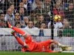 La consiguió el Madrid en el minuto 75 después de que Luis Hernández derribara a Modric en el área y el colegiado pitara penalti. Lo tiró Cristiano. El portugués no vive ajeno al tembleque del equipo y Roberto, con una gran estirada, desvió el lanzamiento. No falló el portugués en el rechace. Suspiró, se llevó las manos a la camiseta en la celebración, y sopló con las palmas hacia arriba. Al final del partido, al primero que buscó fue al portero del Málaga. Estuvieron charlando un rato en el punto de penalti. Cristiano se metió en los vestuarios después de saludar a su madre, novia e hijo mayor en el palco del Bernabéu.