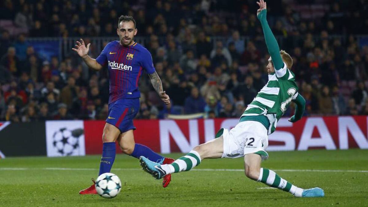 El gol escasea en los partidos europeos del Barça. Alcanzado el liderato, los azulgrana han defendido la condición de favoritos con una excelente defensa ante la Juve, el Olympiacos y el Sporting. Los barcelonistas incluso se han permitido prescindir de Messi durante una hora en Turín y ayer en el Camp Nou. El 10 pisó la cancha después de que Alcácer marcara el 1-0. Aunque el rosarino chutó hasta tres veces para dar fe de vida, no hubo más tantos que uno en propia portería de Mathieu. La noticia estuvo en la fiabilidad de la improvisada zaga del Barcelona. No es poco en un encuentro inanimado, cosas de la fase de grupos de la Copa de Europa.