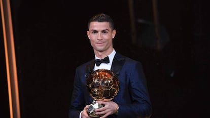 El portugués conquista en París su quinto galardón, el segundo consecutivo, e iguala a Leo Messi como el jugador más laureado de la historia del fútbol