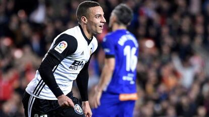 El Valencia se ajustó tras el descanso. Vietto puedo empatar pero su disparo, con Sivera batido, lo desvió Alexis. Rodrigo, que acaba de entrar, pudo empatar de voleón. En pleno despertar blanquinegro, llegó el gol de la noche. Rubén Sobrino envió a la escuadra un zapatazo lejano. Marcelino había movido a sus peones y Guedes, que no podía con Martín, se marchó a la derecha. Desde allí envió a gol el balón que se comió Sivera, portero que el Valencia vendió en verano al equipo de Vitoria. Luego, en uno de sus habituales desbordes, fue derribado por Diéguez, que se marchó expulsado. Rodrigo, que había activado el ataque local, hizo el segundo. El pase, espléndido, que recibió el hispano-brasileño, fue de Santi Mina, otro de los recambios de Marcelino. En diez minutos, el Valencia levantaba la eliminatoria.