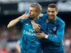 La afamada BBC lució zancada por la pradera de Mestalla. Corrieron y combinaron los delanteros madridistas entre ellos o apoyándose en Marcelo, Kroos, Modric... Así llegó el primer penalti del partido, tras una buena cabalgada de Cristiano, que fue derribado tras jugar con Marcelo y Benzema. No falló el portugués, que marcó su gol número 100 desde los 11 metros. Como tampoco erró poco después para convertirse en el jugador que más penas máximas ha lanzado en la historia de la Liga, superando a Hugo Sánchez con 72. El tercero en esta clasificación, Messi, ha lanzado 59 y anotado 48.