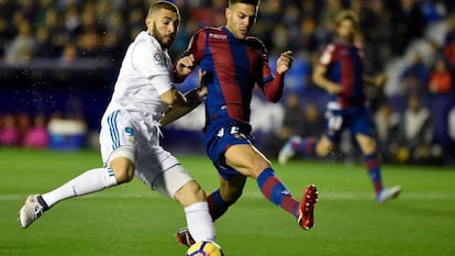 Levante y Real Madrid empataron en el estadio Ciutat de Valencia (2-2) en un encuentro en el que los blancos volvieron a demostrar sus debilidades en defensa y su incapacidad para cerrar los partidos con el marcador de cara. Los de Zidane, que se adelantaron por dos veces en el marcador, primero por medio de Sergio Ramos y después, tras el empate de Boateng, gracias a un tanto de Isco, acabaron perdiendo dos puntos tras el tanto definitivo de Pazzini. El conjunto granota, que realizó un despliegue físico notable, no perdió la cara al partido en ningún momento y logró embotellar al Madrid en los últimos minutos. Con este empate, el sexto en lo que va de temporada, los blancos se mantienen en la cuarta plaza de la clasificación, a 18 puntos del Barcelona, que mañana se enfrenta al Espanyol.