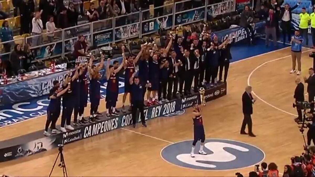 La resurrección de los 10 días se culminó en Las Palmas. El Barcelona de Svetislav Pesic conquistó la Copa del Rey tras superar en la final al Real Madrid de Laso, gobernador absoluto del torneo en los últimos cuatro años. Los azulgrana alzaron el 24º trofeo copero de su palmarés, el primero desde 2013, tras completar en poco más de una semana un rearme tan inopinado como memorable. Una reacción heráldica y deportiva liderada por el entrenador serbio, que no solo ha sacado al club de un atolladero histórico sino que ha logrado atajar la contabilidad victoriosa del conjunto madridista; hasta esta tarde, 13-5 en títulos para los blancos durante el lasismo, 8-1 desde la Liga culé de 2014. Pau Ribas, Ante Tomic y Heurtel (mvp con ocho puntos y siete asistencias) encontraron la kriptonita para derretir al Madrid y encumbrar al Barça a contracorriente. Estiró la abdicación el orgulloso conjunto madridista, que tras estar 18 abajo se acercó a dos puntos a 11s del final. En un desenlace increíble, el balón de la sentencia quedó en manos de Causeur tras dos fallos de Oriola desde el tiro libre. Pero el triple del francés y los sucesivos intentos de palmeo de Taylor y Rudy no entraron. Los blancos reclamaron la falta clara de Claver a Taylor, pero el Barça era el campeón. La Copa volvía a ser azulgrana cinco años después.