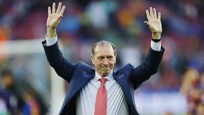 En el Barça, al que llegó por 82 millones de pesetas y más tarde de lo que hubiera deseado, sus mayores logros fueron dos Copas del Rey (1981 y 1983) y una Recopa (1982) conquistada en el Camp Nou ante el Standard de Lieja gracias a un gol suyo de pícaro que ni las cámaras de televisión pudieron captar con claridad por la rapidez con la que Simonsen y él ejecutaron una falta. En la primera Copa que logró alzar se enfrentó en la final a su amado Sporting, al que le hizo dos goles que apenas celebró. Goleador de pocos toques, con un olfato extraordinario, una de sus especialidades eran las vaselinas en los remates de cabeza. Hace unos meses, por teléfono, recordaba una vaselina, esta con el pie, que logró en el Bernabéu con el Barcelona de Maradona en un 0-2 al Madrid en la temporada 82-83. Con el campo embarrado picó la pelota desde fuera del área por encima de Agustín, un guardameta que rozaba los dos metros de altura.
