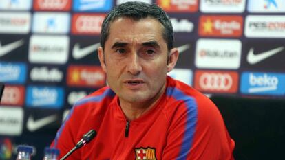 Aunque lo intenta, para Ernesto Valverde es imposible no pensar en el apretado calendario del Barcelona: siete partidos en los próximos 22 días. El primero, este sábado ante el Sevilla (20.45 horas) en el Sánchez Pizjuán. Sabe el técnico del Barcelona que tiene que mimar el físico de sus muchachos, sobre todo la pierna derecha de Lionel Messi, con molestias desde el último partido del Barça ante el Athletic. “La acumulación de partidos juega en contra de arriesgar con un jugador. El partido ante el Sevilla es importante. Yo lo quiero aislar, pero la cabeza da para mucho”, expuso Valverde. Siempre atento a la evolución del 10. “Estoy como tiene que estar un entrenador cuando tiene a un jugador importantísimo con una pequeña molestia”, subrayó el preparador.