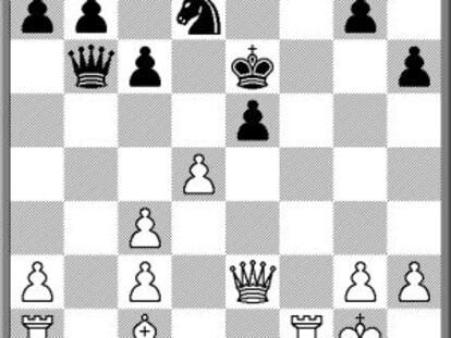 Negras: Ta8, Db8, Ac8, Tf8, Rg8, Cd7, Ae7; peones en a6, b5, d6, e6, f7, g7 y h7.