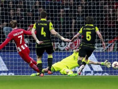 El Sporting CP derrotó al Atlético de Madrid en el estadio José Alvalade (1-0) en el partido de vuelta de cuartos de final de la Europa League, gracias a un solitario gol de Fredy Montero. El conjunto de Simeone hizo valer el 2-0 de la ida y aunque sufrió durante gran parte de un encuentro en el que Oblak volvió a resultar capital para los rojiblancos. El meta esloveno sostuvo a su equipo y logró un pase que se complicó mucho más de lo esperado.