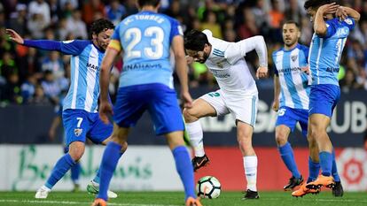 En La Rosaleda, en un encuentro afeitado, sin cornadas, el Madrid atisbó la posibilidad de disfrute. Sin medio equipo titular (Varane, Marcelo, Kroos, Modric y Cristiano) y sin Bale, el cuadro de Zidane se articuló en torno a Isco. O sea, alrededor de la pelota. Tuvo ritmo y fluidez, sobre todo en el primer tiempo. Todo apacible y bien gestionado salvo por los cortocircuitos de Theo y Benzema. El lateral no acaba de ser el que parecía que iba a ser tras su despunte en Vitoria. El francés no es el que fue y cada vez se le ve más destemplado. Al hierático Benzema finalmente le ha podido la cruz del gol. Nunca fue un depredador, pero sumaba.