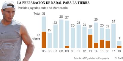 Con la llegada de abril, a Rafael Nadal se le ilumina el rostro y se le afilan los colmillos. Aunque este año se resista, la primavera presagia emociones fuertes para él, el hombre a batir siempre que la arcilla irrumpe en el calendario. Llega, como es tradición, el pistoletazo de salida en Montecarlo, y al número uno se le activan todos los sentidos. “Cada vez que vuelvo aquí es como una historia de amor”, exponía en la jornada de atención a los medios del Principado, donde el curso pasado obtuvo su décimo título y ahora pretende recuperar la inercia después de un trimestre accidentado.