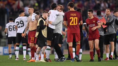 La Roma necesitaba el partido perfecto para compensar el más imperfecto de los partidos. Di Francesco perseguía redimirse después de traicionar sus ideas y variar el 4-3-3, el sistema que lleva años desarrollando, para imponer un 5-3-2 sin apenas tiempo de trabajo. Convencido por supersticiones más que por hechos de que la disposición táctica con tres centrales y dos carrileros le había servido para eliminar al Barcelona, siguió adelante con plan precipitado. La reforma que deshizo a su propio equipo privándolo de un extremo y de un interior y exponiéndolo a los latigazos de Salah, Mané y Firmino, la delantera más prolífica de Europa. El parcial de 5-0 en Liverpool fue el despertador. Cuando la Roma recuperó su forma habitual los jugadores se reubicaron. La vuelta no ofrecía margen de error.