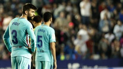 Tras conquistar el título, el pasado 29 de abril en Riazor, el Barcelona perseguía un objetivo: ser el primer equipo en finalizar la Liga sin perder, desde que lo consiguió el Madrid en la campaña 1931-1932. Sin embargo, en el Ciutat de Valencia, el Barça chocó ante los delanteros de Levante, Boateng (tres goles; desde Forlán en 2005 que nadie le firmaba un triplete) y Bardhi (dos); pero, sobre todo, se vio castigado por sus errores defensivos. El Barça se deshilachó en la zaga, penalizado por la lesión de Vermaelen que dejó el campo en el minuto 28. Según informó el club, tiene una lesión muscular en el bíceps femoral del muslo derecho.