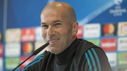 Salió Zinedine Zidane este martes a la sala de prensa de Valdebebas ante una masa de periodistas en el Open Media Day del Real Madrid antes de la final de Kiev de este sábado. Quedan cuatro días para medirse al Liverpool y para dirigir su tercera final de Champions seguida y al técnico francés se le vio alegre, optimista, tranquilo, irónico y vacilón. Transmite seguridad, fe, confianza y buen humor.