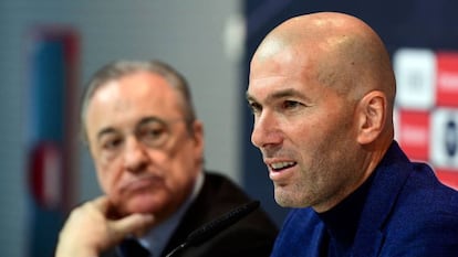 Sale Zinedine Zidane y Florentino Pérez, presidente del Real Madrid.
