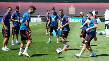 El costado derecho de la selección es motivo de inquietud en el cuartel general del equipo. La baja de Dani Carvajal enfrenta a Lopetegui a una disyuntiva: Poner como lateral derecho al intrépido Odriozola y conservar la forma y el carácter ofensivo del conjunto; o cerrar el flanco con Nacho, central reconvertido. La primera opción es la más natural porque responde a la ortodoxia del modelo que sigue España desde 2007. La segunda es conservadora y supondría una reacción a las amenazas que plantea Portugal, con Cristiano al frente. Del lateral derecho elegido puede depender la titularidad de Koke o Thiago.