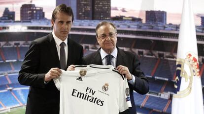 Lopetegui aterrizó por la mañana en Barajas y por la tarde se puso traje y corbata para su presentación en el Bernabéu. Lo hizo arropado por su mujer e hijos y acompañado por el presidente Florentino Pérez. "Es un acto que queríamos llevar a cabo tras la finalización del Mundial y tras un nuevo triunfo de la selección, pero una serie de circunstancias han hecho que estemos aquí hoy", explicó el máximo mandatario del club. Pérez aseguró que el Madrid puso la transparencia por delante, que en cuanto alcanzó un acuerdo con Lopetegui se lo comunicó a Rubiales. "Es un acuerdo al que llegamos en el ejercicio de las libertades de ambas partes, para trabajar juntos después del Mundial y respetando la cláusula. Pensamos, además, hacerlo público por una muestra de transparencia. Quienes mezclan este acuerdo con supuestos actos de falta de lealtad, tienen un sentido patrimonial de las personas e instituciones, felizmente superado en la España del siglo XXI", prosiguió Pérez. “Fue una absurda reacción de orgullo mal entendido”.