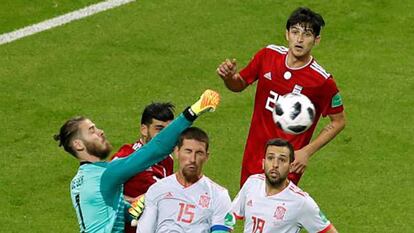 De repente, un conjunto forastero, extraviado, sin carrete en medio campo, sin enganche con la delantera y con el eje partido. Si se trataba de que Costa (o luego Asensio y Rodrigo) tuvieran panorámica a campo abierto, España no lo consiguió. Es más, toda su munición se limitó a un disparo de Busquets —por cierto, lo que en todo el encuentro no hicieron Iniesta e Isco— y a un berenjenal sobre la raya de gol iraní originado por Piqué. Si lo que se buscaba era amparar al titubeante De Gea de estos días, la Roja no echó bien la cerradura e Irán encadenó más de una oportunidad.