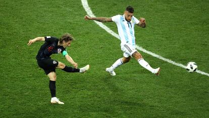 Todavía no se había atado las botas Messi y Perisic ya había exigido una excelente intervención de Caballero. A Croacia no le costaba nada llegar al área de Argentina, que se paró con una defensa de tres, vulnerable por las bandas, bien atacadas por Perisic y Vrsaljko. El equipo de Dalic, sin embargo, se confió en exceso por la permeabilidad del rival, se tiró atrás a pesar de contar con excelentes centrocampistas parar manejar el balón y dejó la iniciativa a la Albiceleste. Muy poco a poco desperezaron los muchachos de Sampaoli. A pesar de ser un equipo lento y previsible, empezó a pisar el área con llegadores como Meza. Aunque a Messi le costaba recibir, sin espacio para maniobrar y enganchar con Agüero, el partido tenía vida: Enzo Pérez perdonó un gol en un remate a puerta vacía después de una entrada por la izquierda de Acuña y acto seguido Mandzukic cabeceó fuera un centro que se comieron los centrales y Caballero.