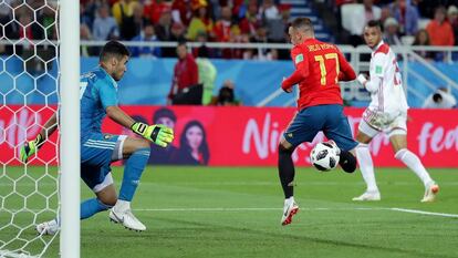 El golazo del portugués Quaresma tampoco fue balsámico para España. Ni con los fantasmas de una histórica eliminación ya más despejados, la Roja tuvo el poso que se le supone. Nadie daba con el hilo, salvo Isco, fajador por todos los sectores, incluso en el remate. Un cabezazo suyo fue desviado sobre la raya por Saiss y otro inmediato de Piqué fueron las únicas amenazas de la Roja antes del tanto terminal de Aspas. Las pocas ocasiones no eran hijas del juego. Con Marruecos cada vez más confiada, Amrabat estrelló el balón en la escuadra derecha de De Gea con un tirazo. Un relámpago de lo que le esperaba a España. En un lanzamiento de córner, En Nesiry, jugador del Málaga, se elevó sobre el techo de Ramos y clavó el 2-1.