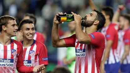 Crecido por su primer gol, fue a cada disputa con Sergio Ramos como si fuera la última. Por arriba y por abajo, aceptó y ganó el combate. “Somos amigos, pero los dos sabemos que si su madre y la mía están en el campo cada uno va a lo suyo”, aclaró el bigoleador con el trofeo de mejor jugador del partido. No cejó en su empeño Costa de darle salida al equipo incluso cuando parecía que la historia parecía endiablarse. De nuevo el Madrid le daba la vuelta al marcador en una final. Costa siguió lo suyo, tirando desmarques, chocando su cabeza con Ramos y protestando. Cuando cazó la jugada de ratón de Correa, quiso buscar a Juanfran, que se redimió de la mano persiguiendo la pelota para recuperarla y dársela a Correa. “Con las ganas y los cojones que tenemos podemos pelear con quien sea”, advirtió eufórico Costa, que se permitió incluso bromear: “Le dije al Cholo que si quería ganar me tenía que fichar”.