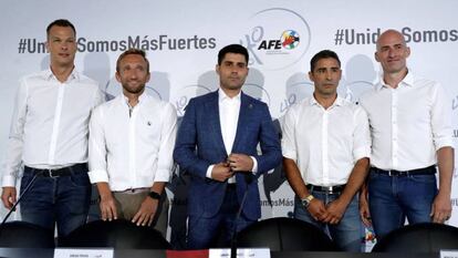 Aganzo estuvo acompañado en la rueda de prensa por Jesús Barbadilla Jesule, vicepresidente de la AFE; Diego Rivas, secretario general; y Xavi Oliva y Sergio Piña Queco, vocales.